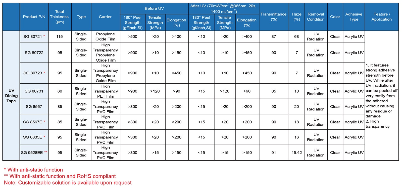 首頁 > 產品 > 膠帶材料 > 膠帶 > 紫外線解除膠帶