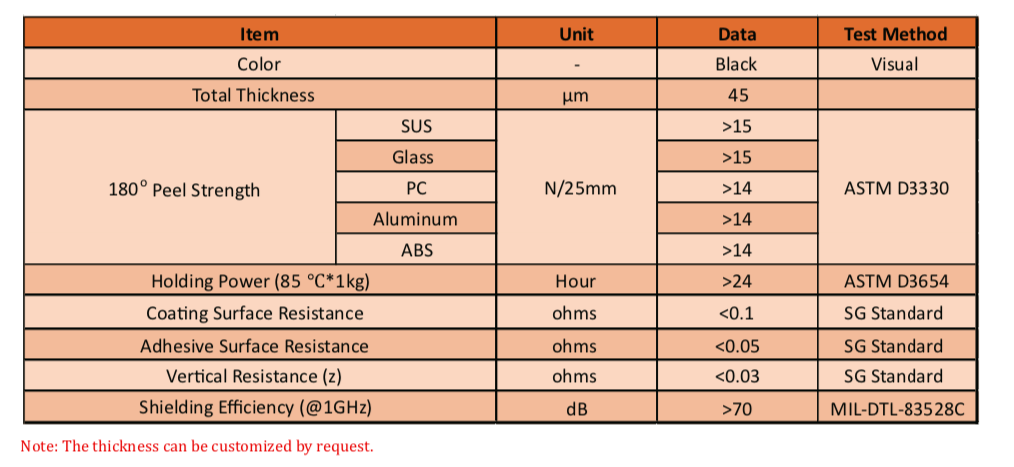 TM CF045DB布膠帶由具有黑色涂層的導電布和背面覆有一層導電膠粘劑組成。這種黑色膠帶具有出色的遮光和抗刮性能。CF045DB不僅具有優異的體積導電性,可靠地接觸小接地區域,還增強了膠帶的物理性能,具有良好的可操作性。它柔軟且具有出色的彎曲性能。" />