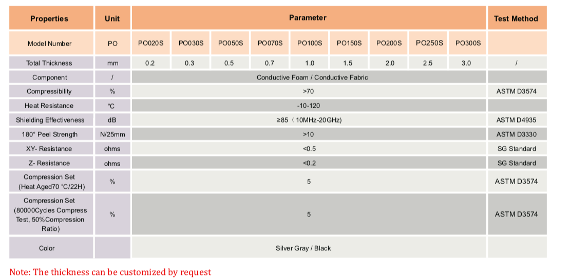 TM POS系列導電泡沫由金屬鍍開孔聚氨酯泡棉和帶有導電壓敏丙烯酸粘合劑的金屬化織物組成。這種高度可壓縮的材料專門設計用于通過X、Y和Z軸提供EMI屏蔽和接地。POS系列基于軟泡棉結構,在寬間隙距離內具有可靠的電氣性能。與PO系列相比,POS系列更柔軟,在一定壓縮比下需要更低的力載荷。" />